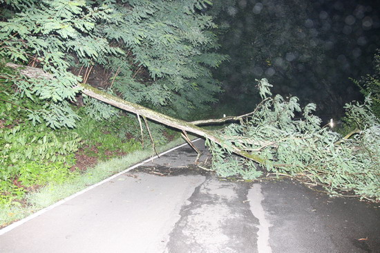 Ein Baum war umgestürzt und versperrte die Wisperstrecke Höhe Haus-Rheinberg.