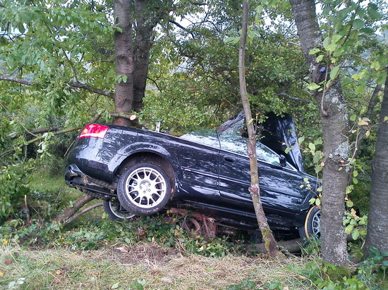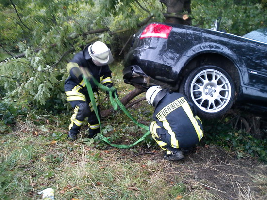 kam nach links von der Fahrbahn ab und prallte gegen einen Baum.