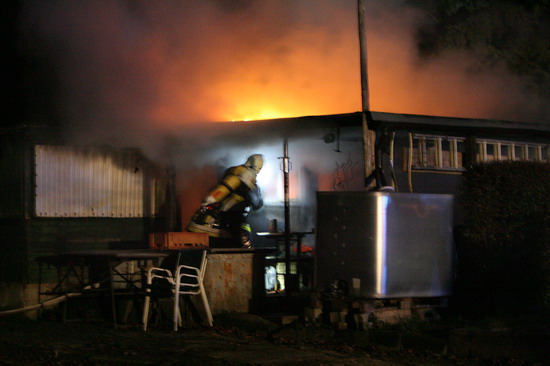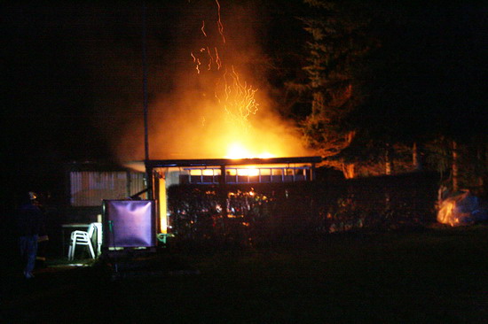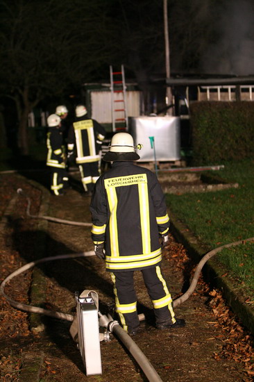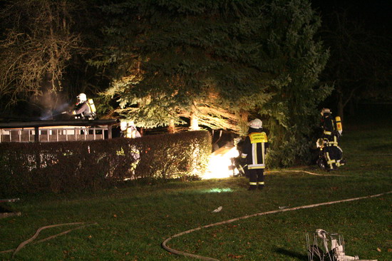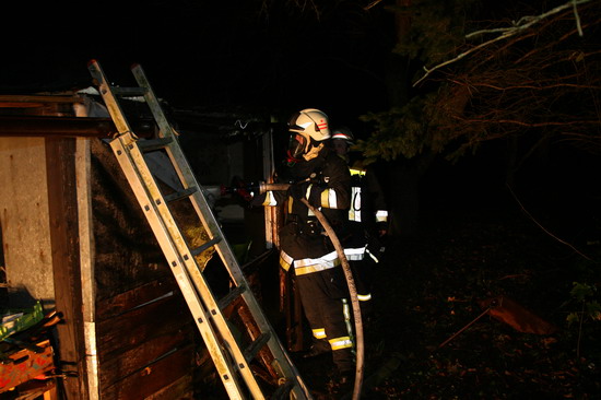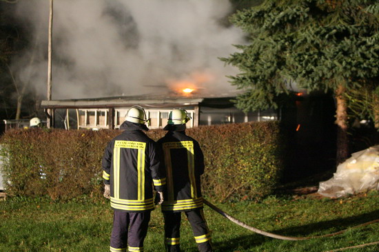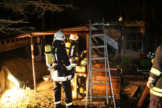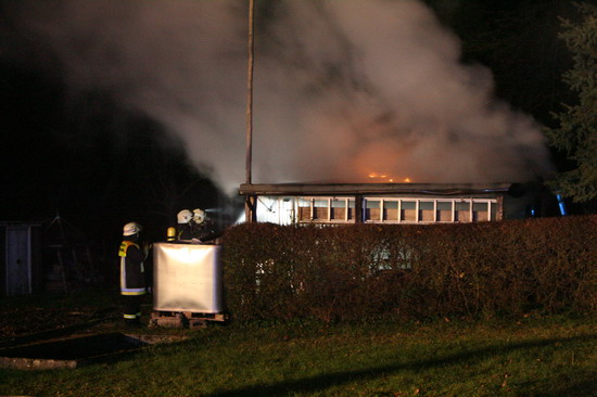 Brandstiftung brannte eine 5 mal 6 Meter große Gartenhütte in voller