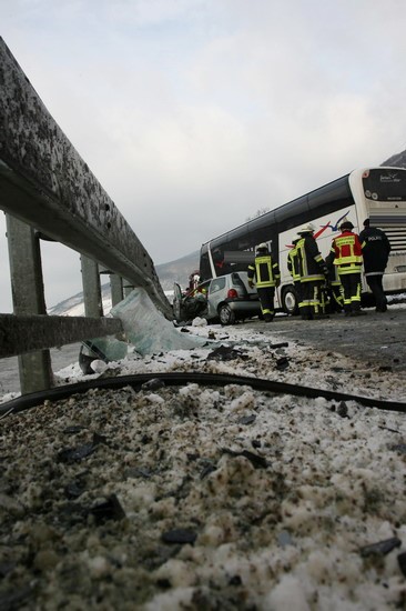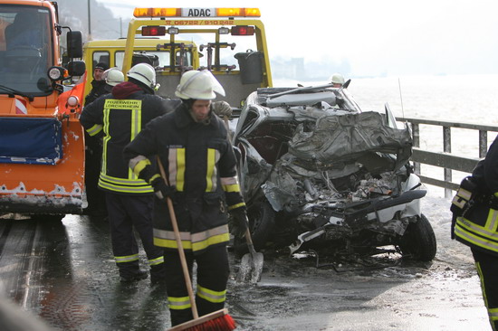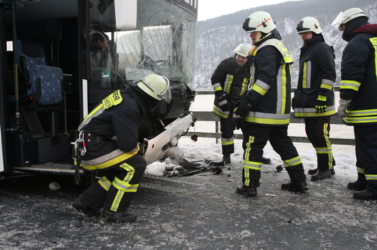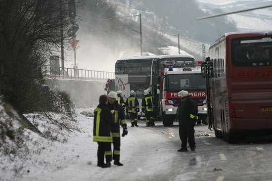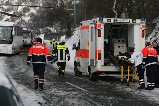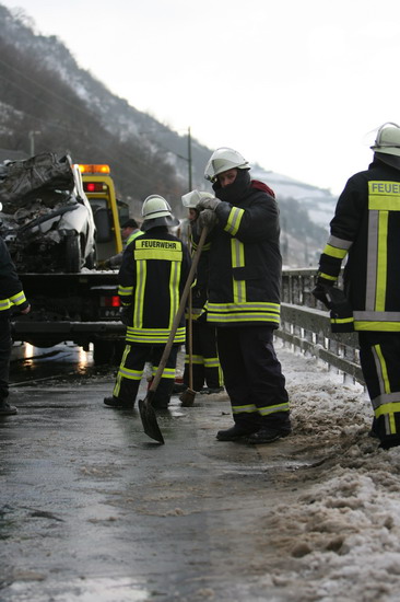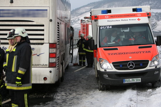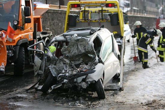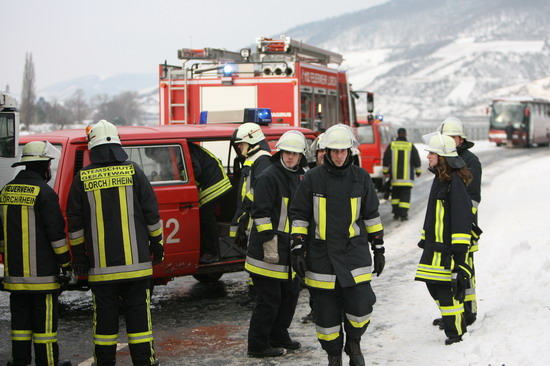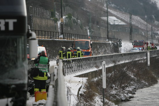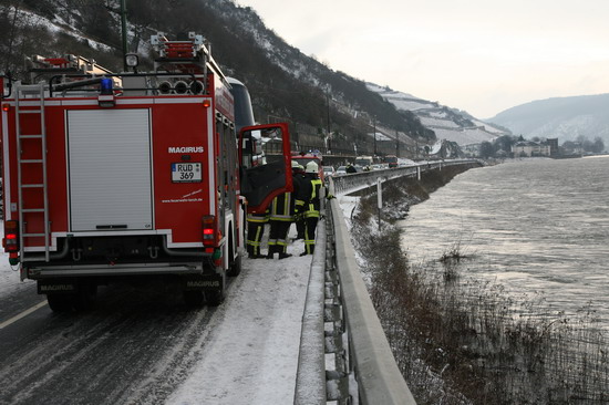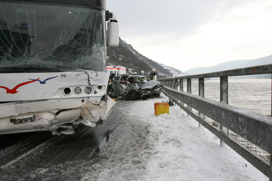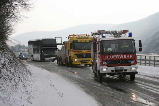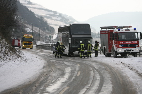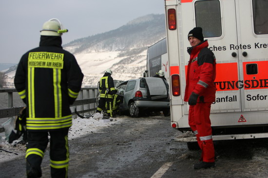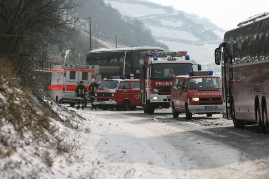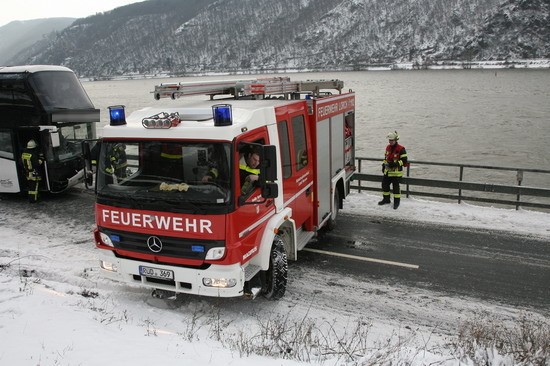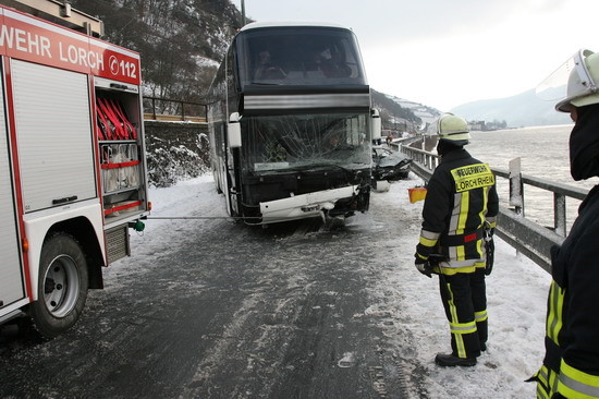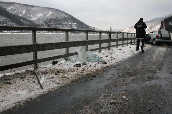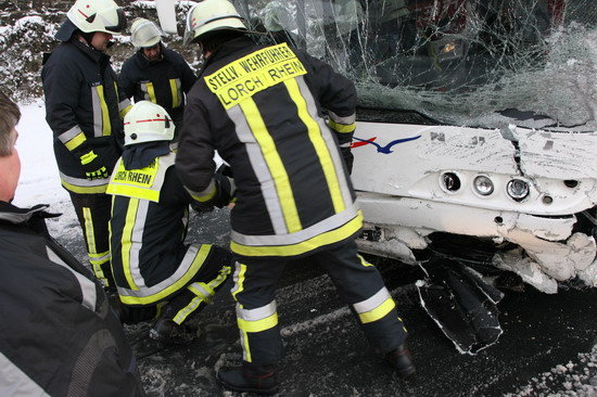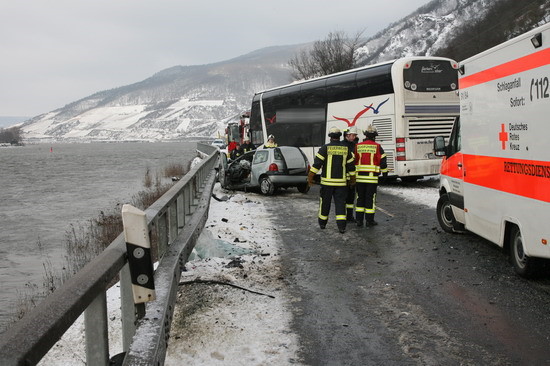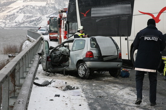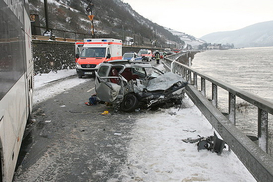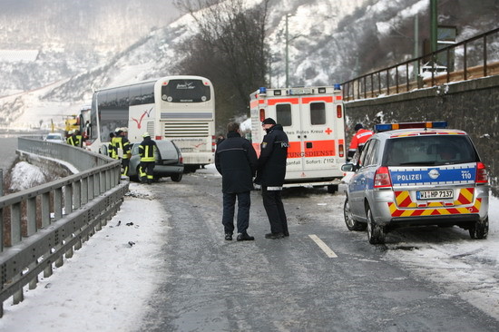 Bad Schwalbach (ots) - Am Samstag, 25.12.2010, 11.30 h, kam es auf der B 42, zwischen Assmanshausen und Lorch, zu einem Verkehrsunfall mit tödlichem Ausgang. Eine 18-jährige Pkw-Fahrerin aus Geisenheim befuhr die B 42, aus Richtung Lorch kommend, in Richtung Rüdesheim. Bei km 1,9 geriet die Fahrerin nach einer leichten Linkskurve auf schneeglatter Fahrbahn mit ihrem Fahrzeug ins Schleudern. Der Pkw schlingerte auf die Gegenspur und kollidierte frontal mit einem entgegenkommenden Reisebus aus Grafenau. Im Reisebus befanden sich neben dem 51-jährigen Fahrzeugführer aus Waldbrunn noch 21 Insassen, alle Personen im Bus blieben unverletzt. Die Pkw-Fahrerin wurde durch die FFW schwerverletzt geborgen und mittels Rettungshubschrauber in eine Mainzer Klinik verbracht, wo sie ihren schweren Verletzungen erlag. Die Sachschadenshöhe wird auf ca. 13.000 EUR geschätzt, für die Dauer der Unfallaufnahme und Abschleppen der Fahrzeuge mußte die B 42 für 2,5 Stunden voll gesperrt werden.