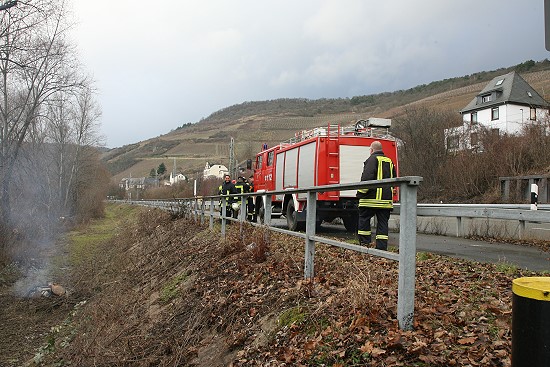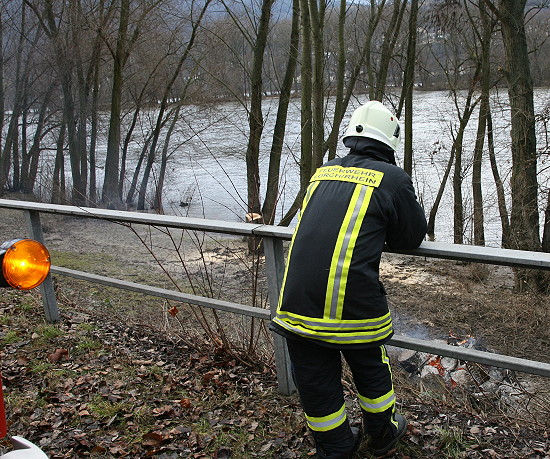 einem brennenden Baum am Rhein alarmiert. Beim Eintreffen