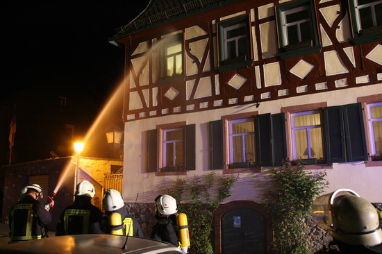 Atemschutz über die Drehleiter aus Rüdesheim zur Brandbekämpfung