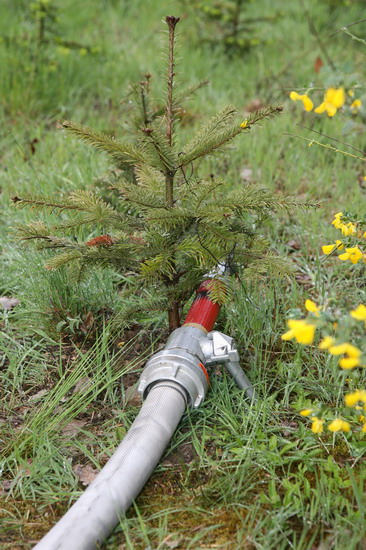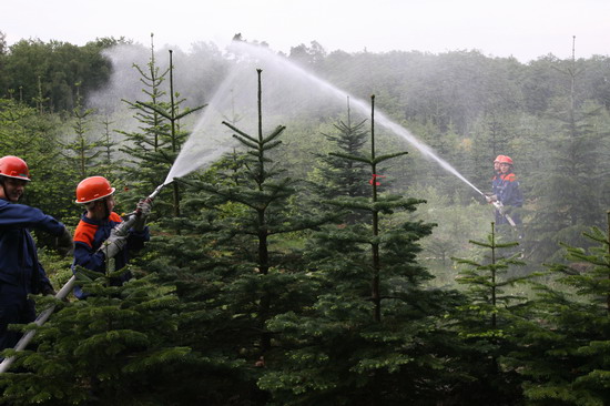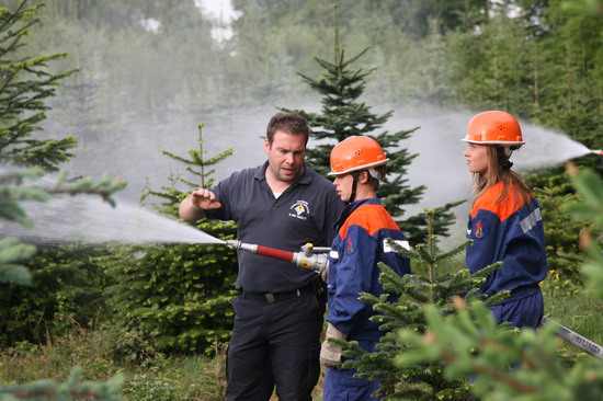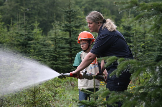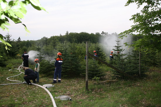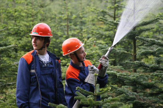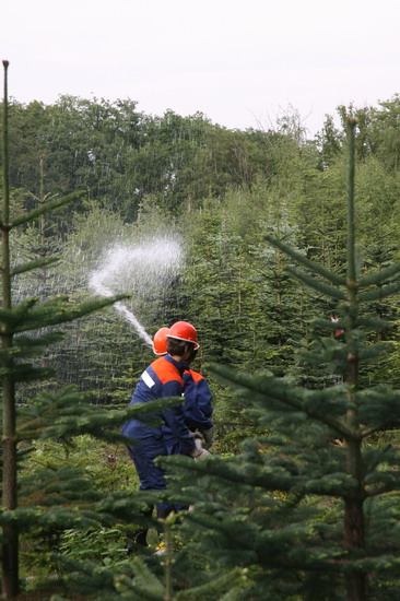 Jugendfeuerwehr aus um die neugepflanzten Tannenbäume an den 12