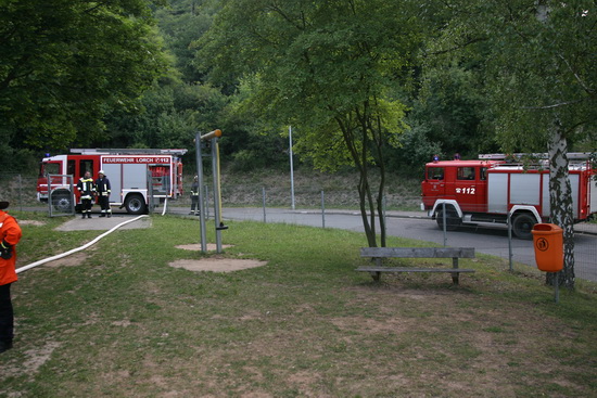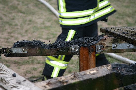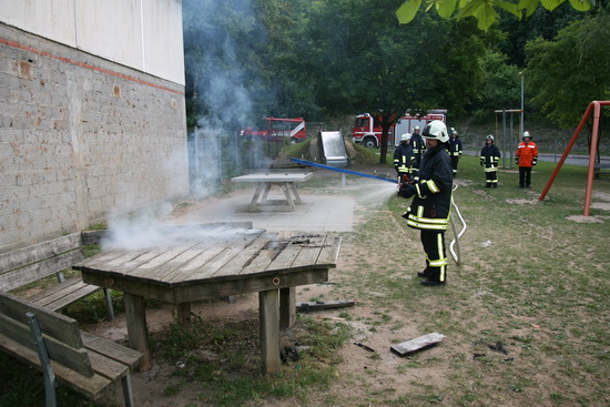 Auf dem Spielplatz am Ranselberg brannte ein Tisch. Feuer mit einem C Rohr gelöscht