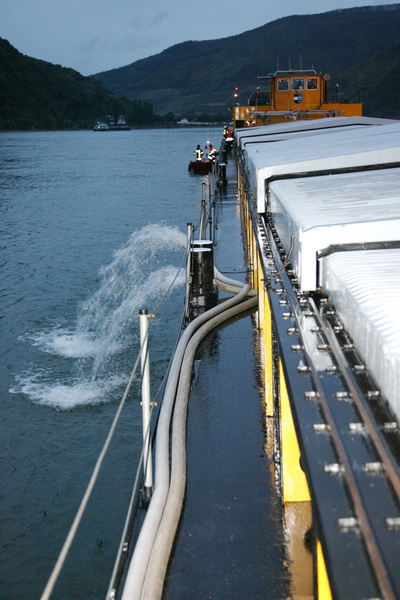gegen 09:45 Uhr in eine Werft nach Bingen verbracht und