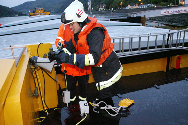 durch ein Mehrzweckboot der Feuerwehr Rüdesheim am Rhein,