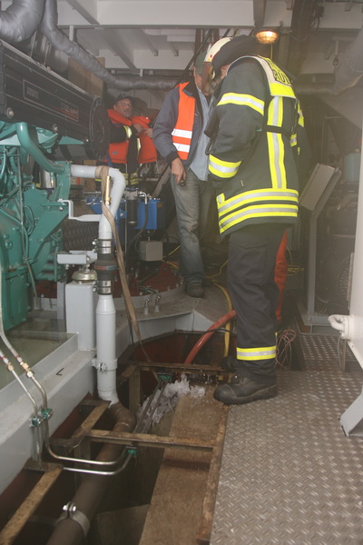 der Wassereintrag durch die Einsatzkräfte weiterhin