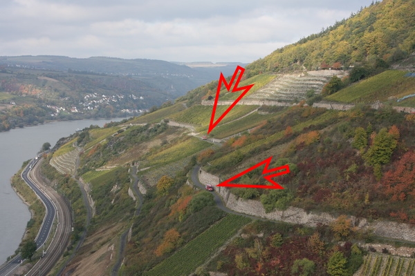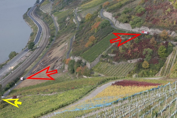 da dort wo der gelbe Pfeil ist eine Eisenbahnunterführung ist, aber in der Höhe nur für PKW´s ausreichend!