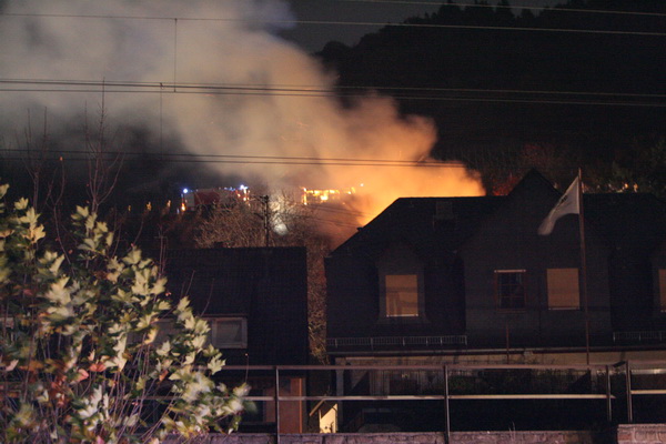 Feuerschein von Niederheimbach aus -über den Rhein hinweg-