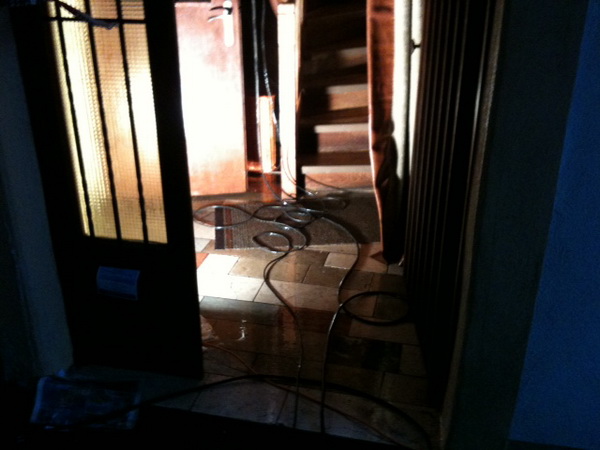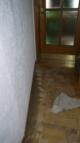 gesamte Treppenhaus und mehrere Räume vom Wasserschaden betroffen.
