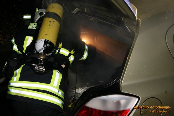 PKW Brand Die Feuerwehr Lorch wurde heute Abend zu einem PKW Brand an der