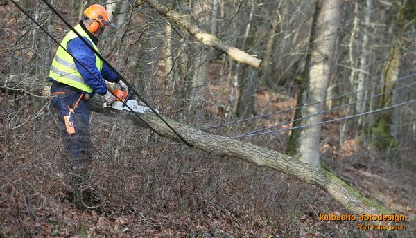 auf der Telefonleitung. Er wurde mit einer Motorsäge beseitigt und