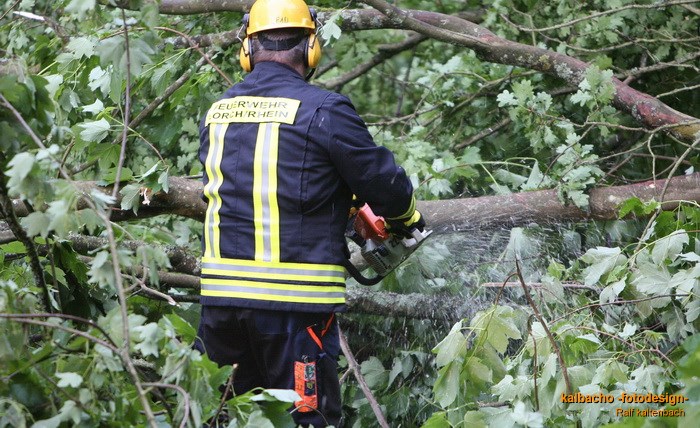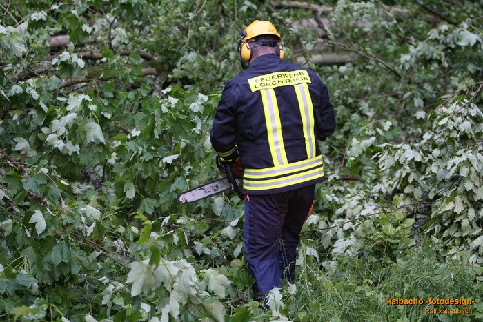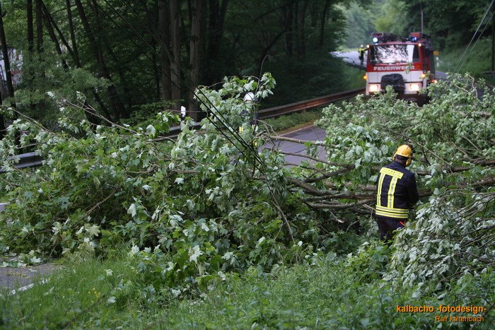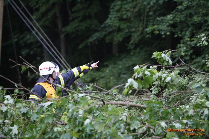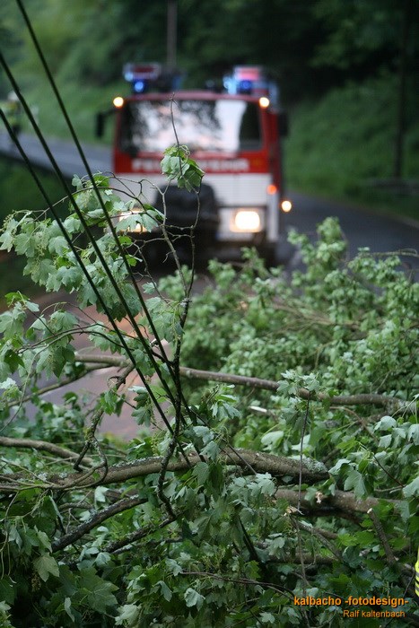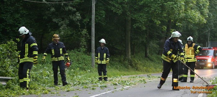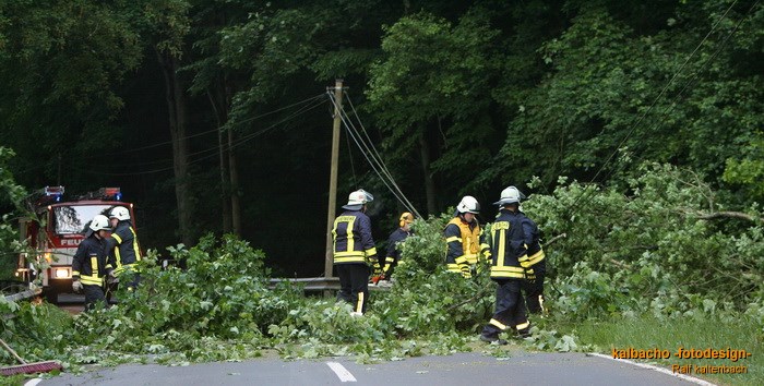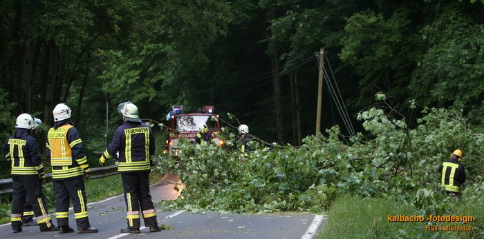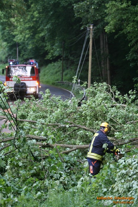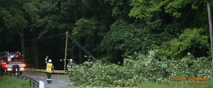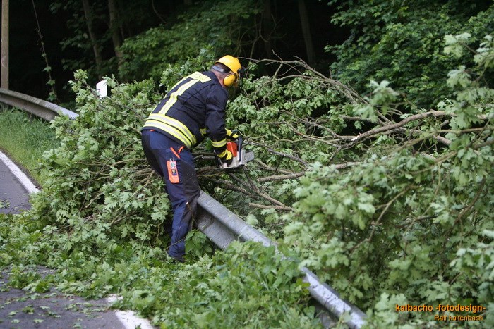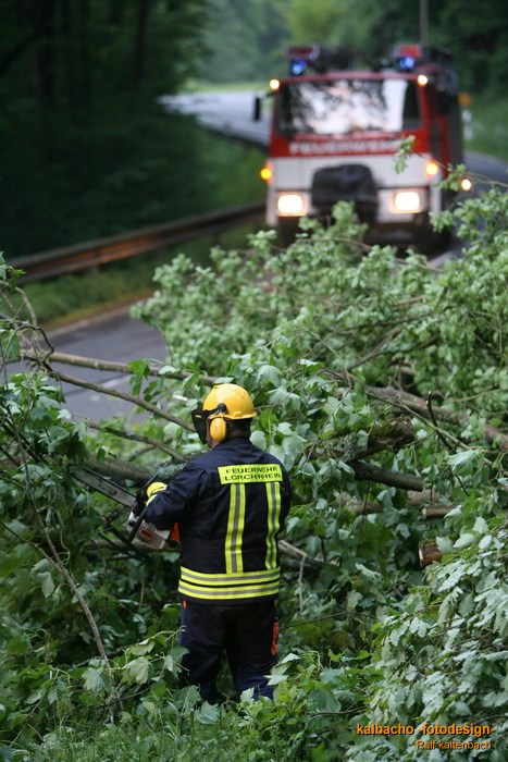 alarmiert. Der Baum versperrte 2/3 der Fahrbahn und riss eine