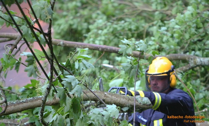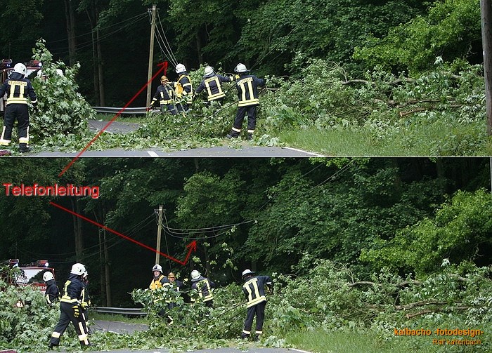 Telefonleitung runter. Er wurde mit der Motorsäge beseitigt, die