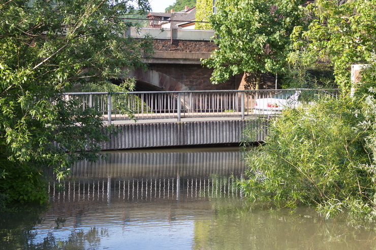 wurde der Notsteg am Bauhof Lorch verladen und in Lorchhausen