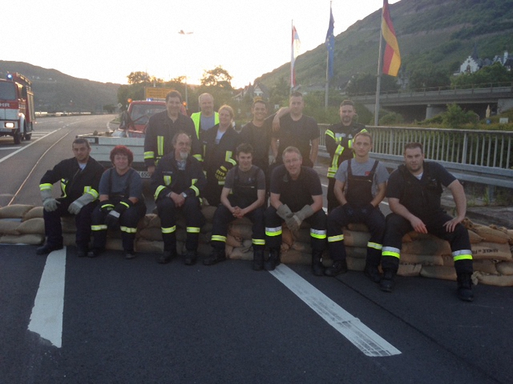 Am Abend musste die Sandsacksperre an der Haupteinfahrt Lorch