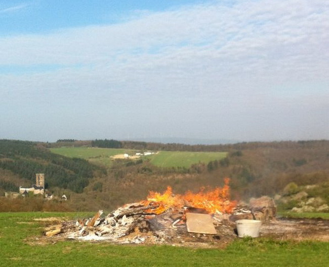 sich der Scheunenbrand als Nutzfeuer auf einer Wiese abseits der