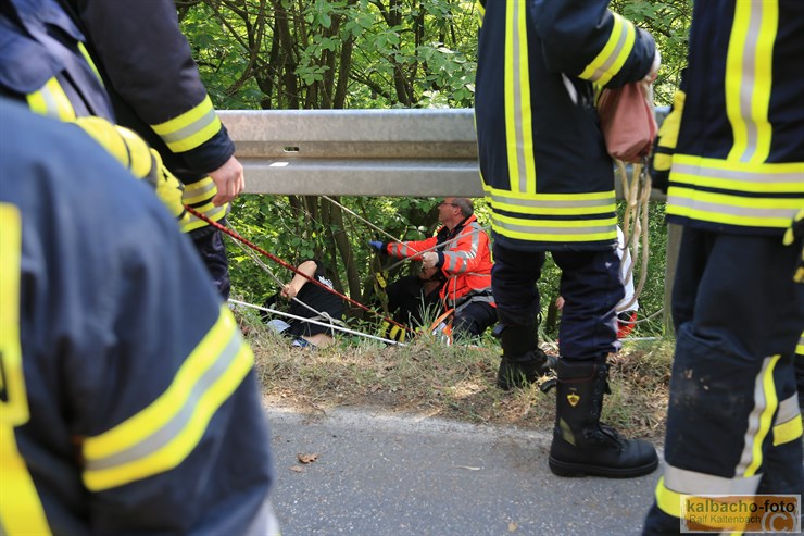 gestürzt und unter der Leitplanke ca. 5m den Abhang hinunter