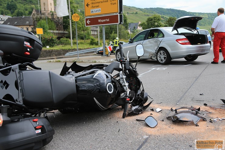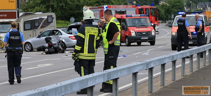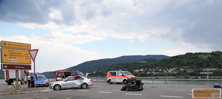 Hauptausfahrt von Lorch hat ein PKW, der auf die B42 auffahren