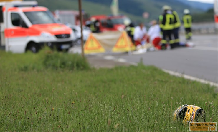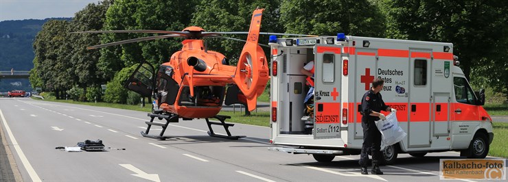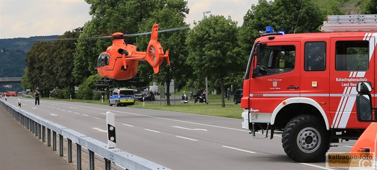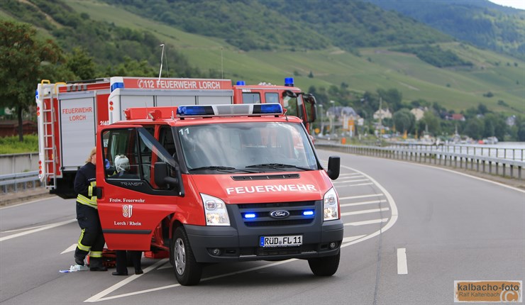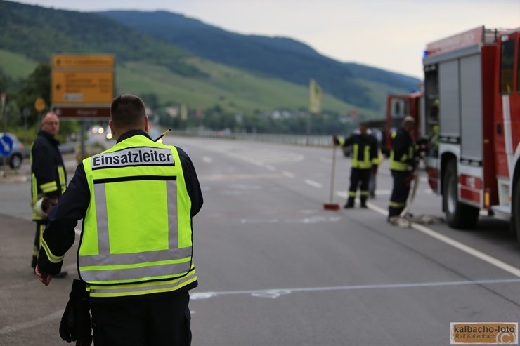 einem schweren Verkehrsunfall auf der B42 alarmiert. An der