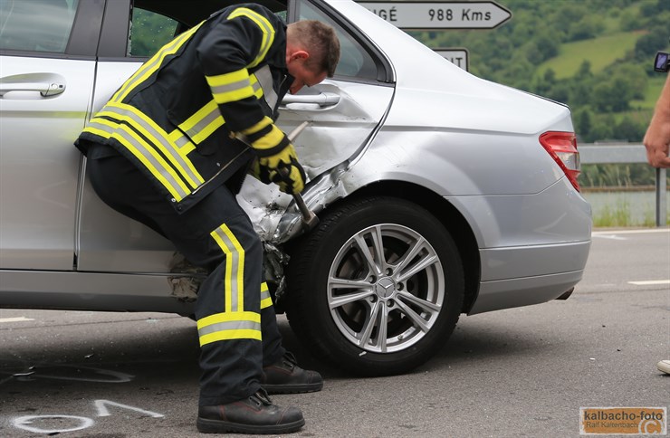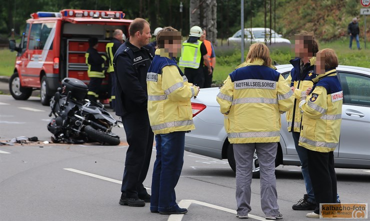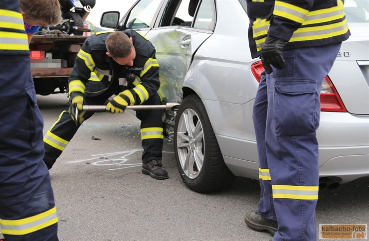 wollte, ein Motorrad übersehen. Die Feuerwehr unterstützte den