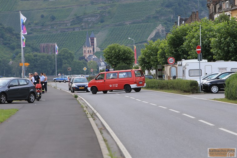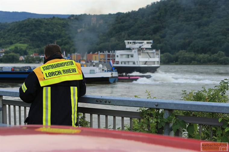 (HZ) Die Feuerwehr Lorch wurde zum Absperren der B42 wärend der Schleppversuche an dem Havarierten Tankschiff in Lorchhausen alarmiert.