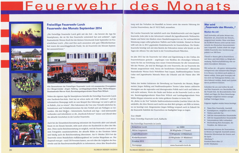 29.11.2014 - Feuerwehr des Monats Bericht mit Foto FLORIAN HESSEN
