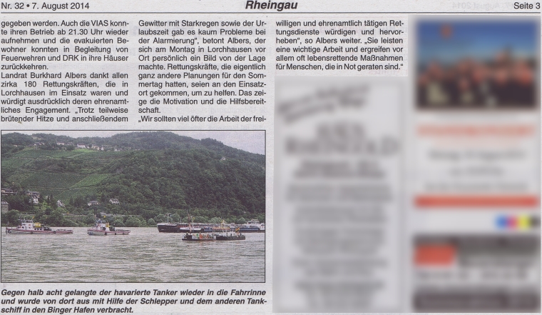 07.08.2014 - Havarierter Tanker Bericht im Rheingau Echo