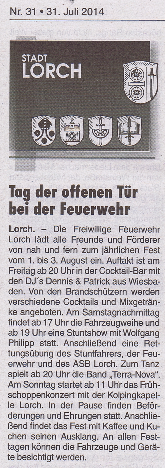 .07.2014 - Tag der offenen Tür Bericht im Rheingau Echo