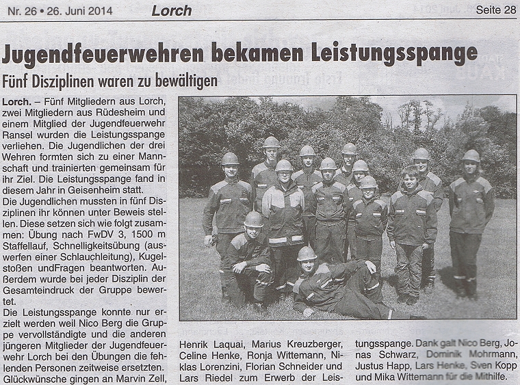 26.06.2014 - Leistungsspange Bericht im Rheingau Echo