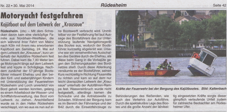30.05.2014 - Motoryacht festgefahren Bericht im Rheingau Echo