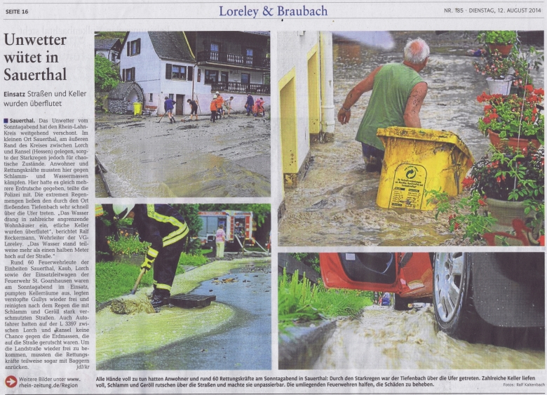 Unwetter wütet in Sauerthal Bericht Rhein-Lahn Zeitung