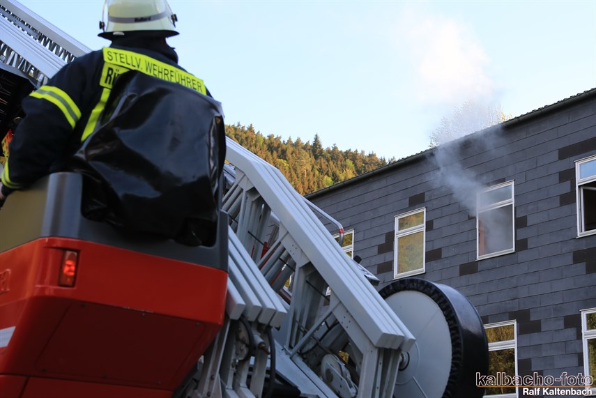 Brand in der Flüchtlingsunterkunft im Gewerbegebiet. Beim Eintreffen
