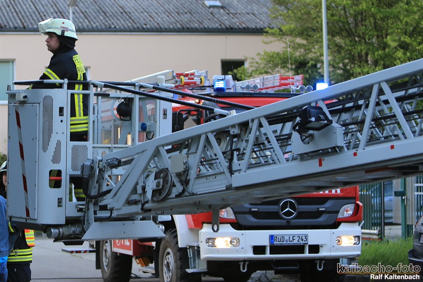 Drehleiter gerettet wurden. Außerdem wurde von drei Trupps unter