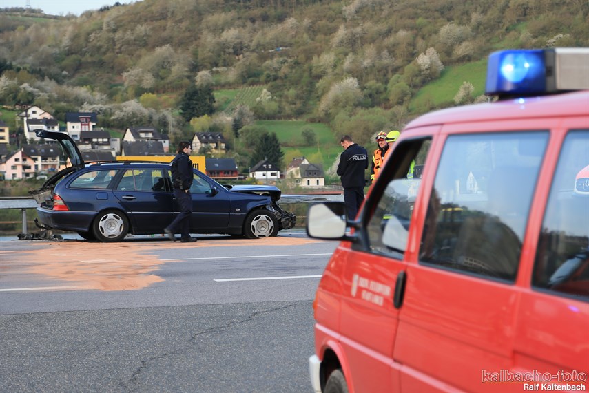 streute die auslaufenden Betriebsstoffe mit Ölbindemittel ab.
