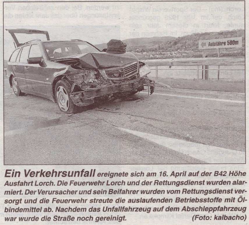 B42 an der Ausfahrt Lorch alarmiert. Der Verursacher und sein