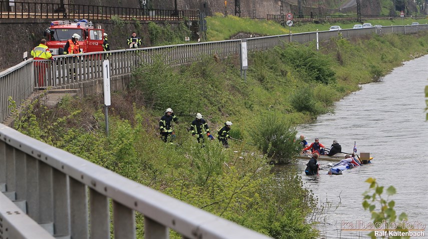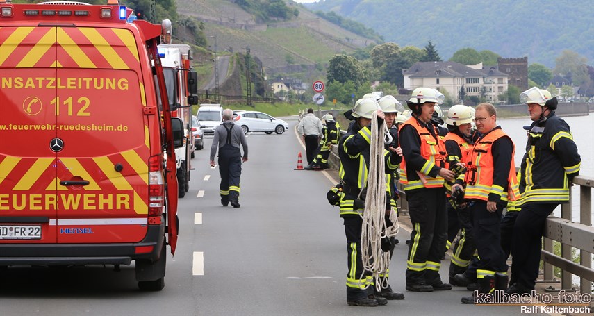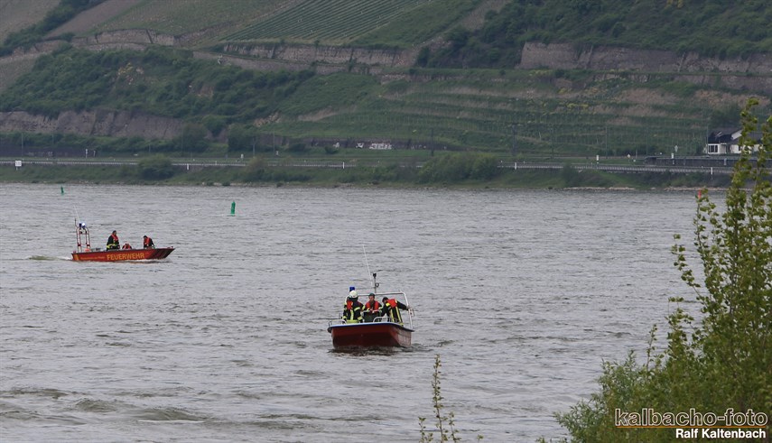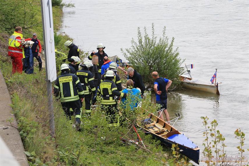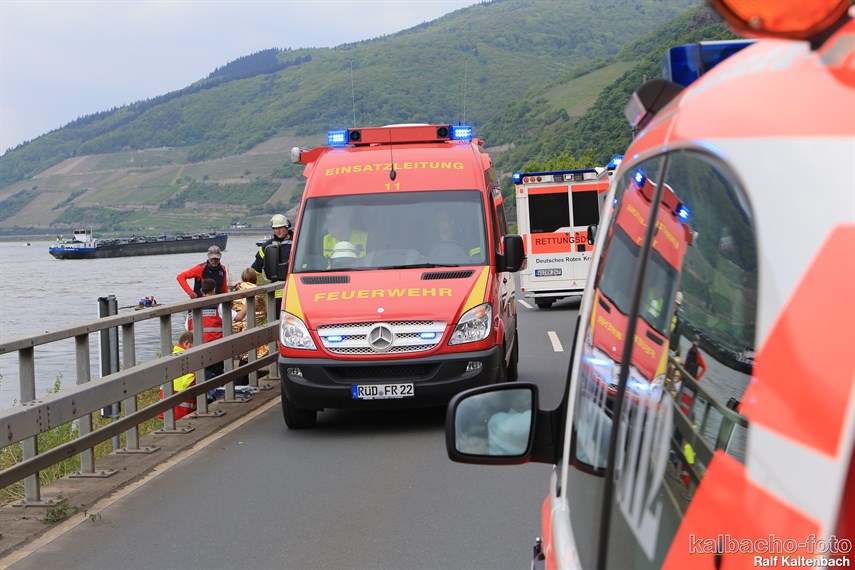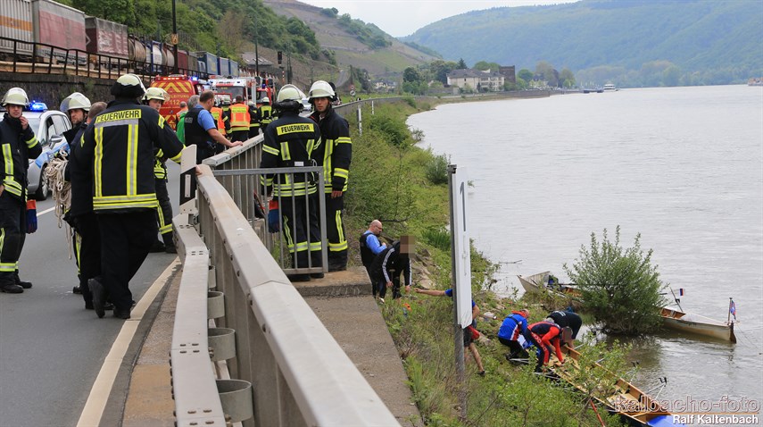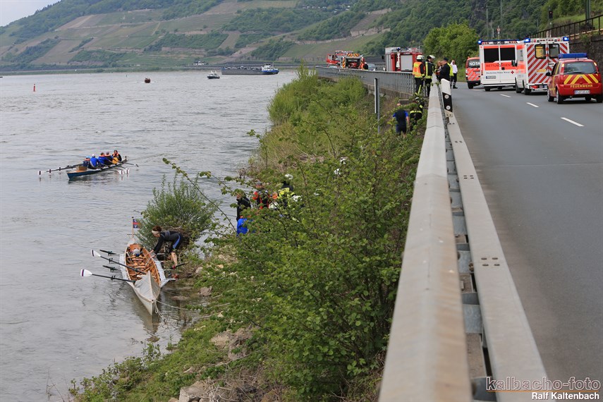 umgestürzten Ruderboot mit 5 Personen im Bereich Assmannshausen