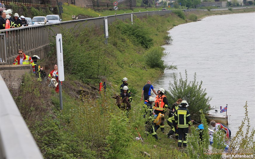 Personen unterhalb von Assmannshausen am Ufer und wurden durch die