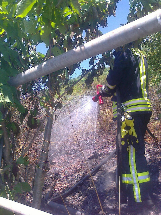 (TL) Die FF Lorchhausen und Lorch wurden zu einem Flächenbrand in den Weinbergen gerufen. Es brannten ca. 50 Quadratmeter Sträucher und Wiese . Mit 2 C Rohren wurde das Feuer gelöscht.
