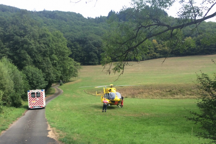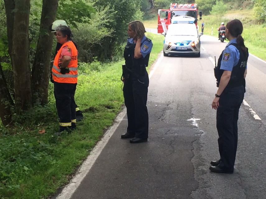 Rettungsdienst bei einem Motorradunfall im Wispertal alarmiert.