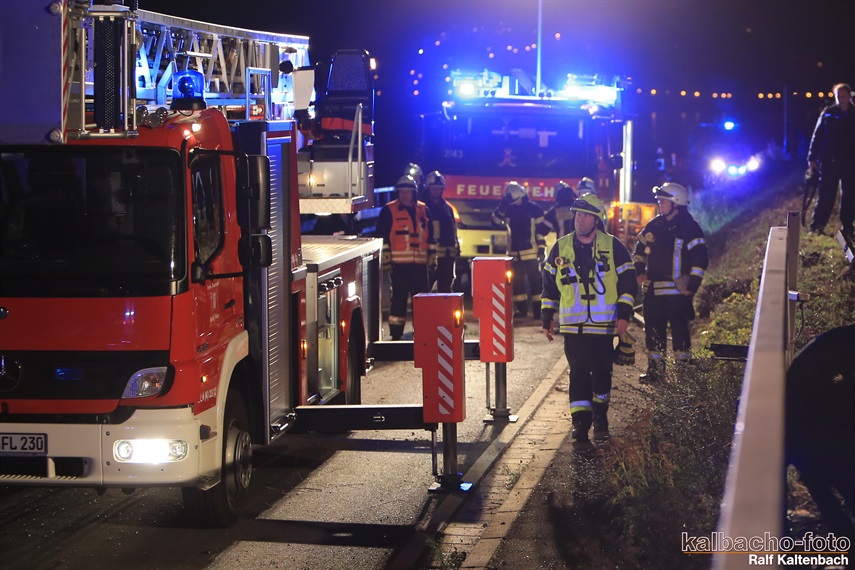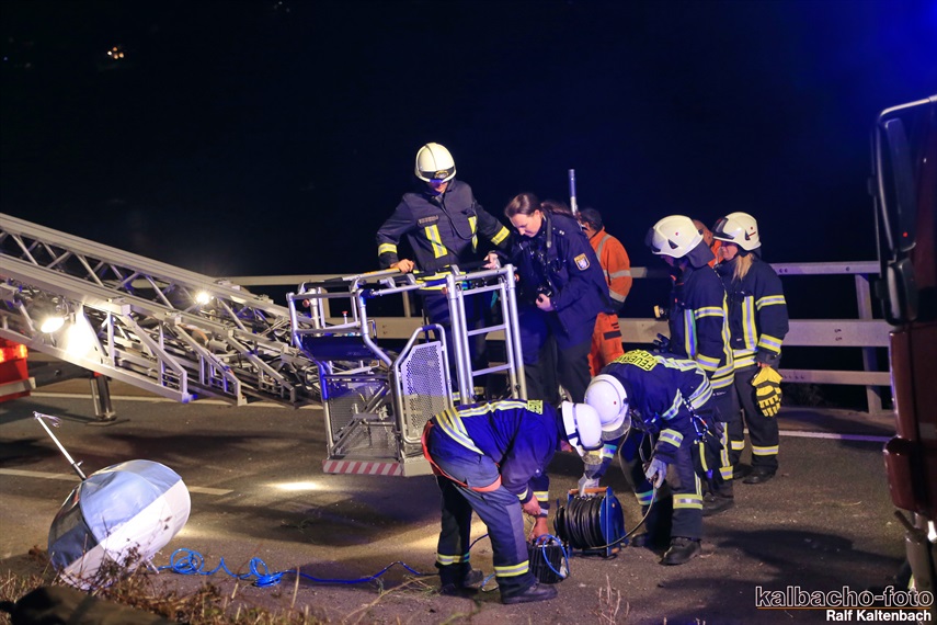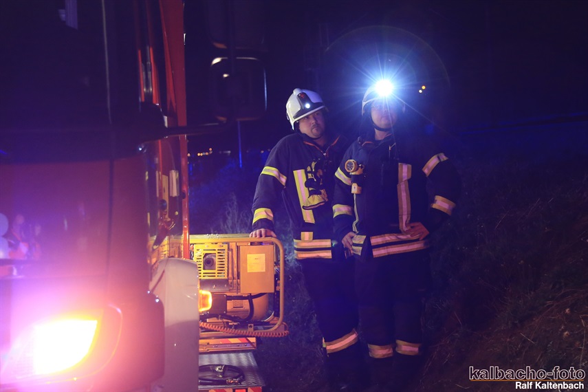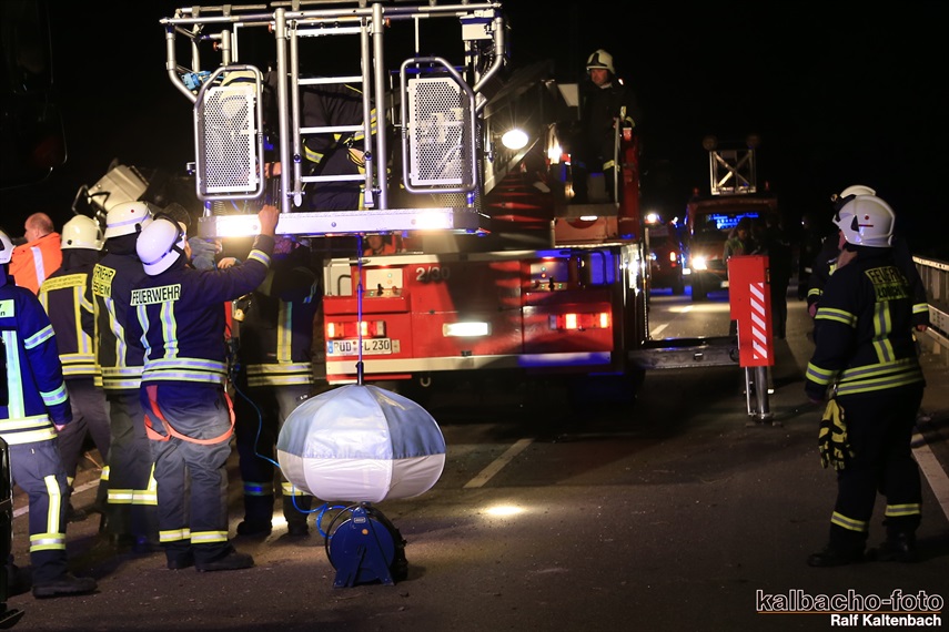 Lichtmastfahrzeug aus Rüdesheim leuchteten die Unfallstelle für