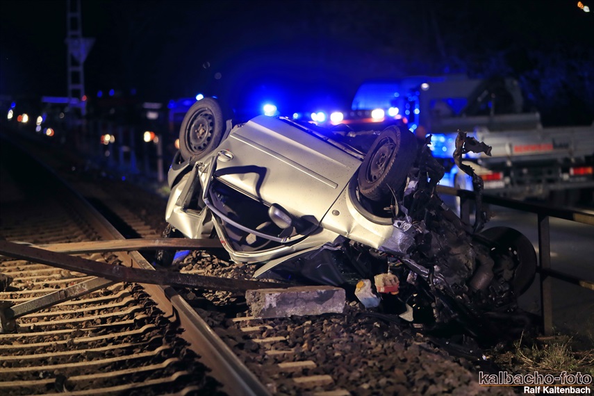 und auf dem Dach liegend auf den Gleisen liegen geblieben. Der