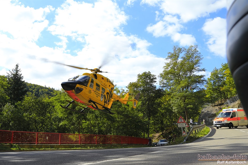 An der Einsatzstelle wurde der Hubschrauber welcher im Kurvenbereich