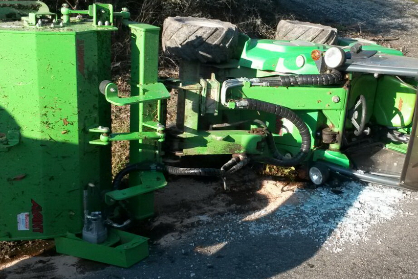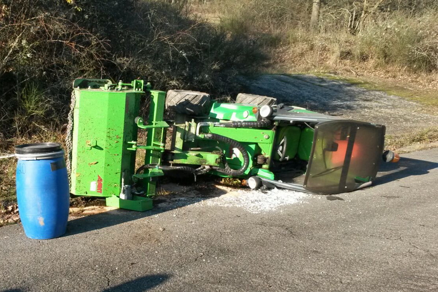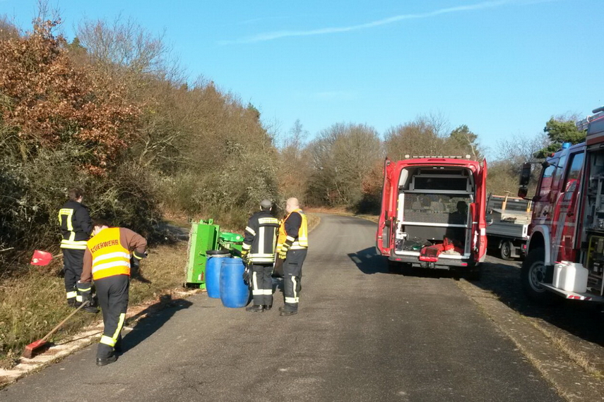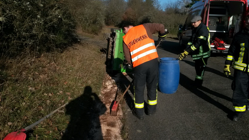 umgekippt. Die auslaufenden Betriebstoffe wurden mit Bindemittel