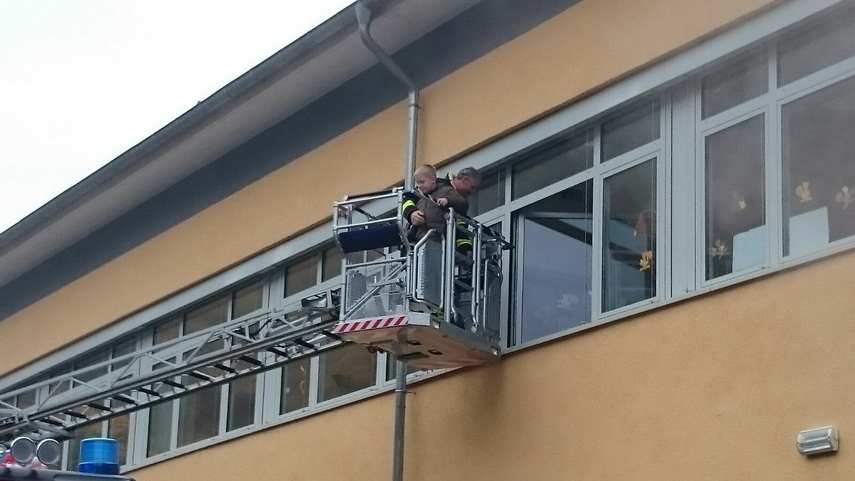 Einsatz der neuen Drehleiter in der Lorcher Grundschule, an der 125
