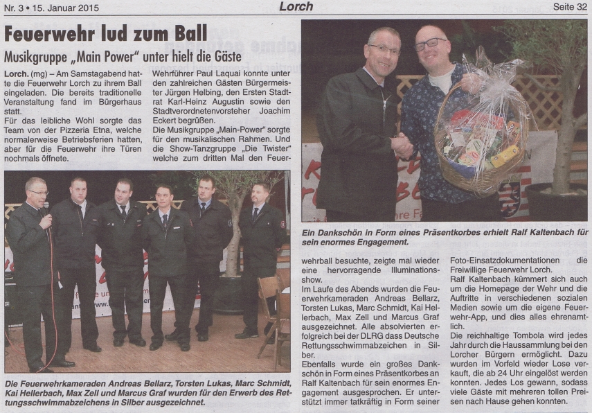 10.01.2015 Feuerwehrball im Bürgerhaus Lorch