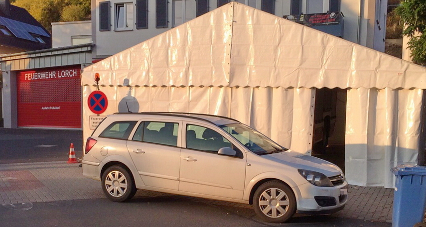 In dem Zelt überwintert das Tanklöschfahrzeug! Bis im Frühjahr mit dem Bau der neuen Halle begonnen wird.