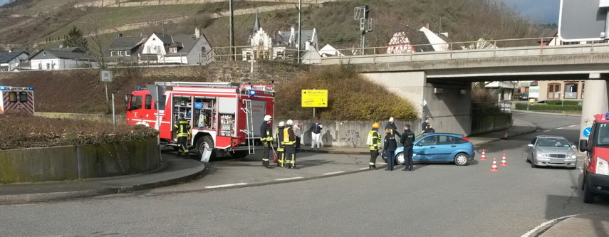wurden heute Mittag zu einem Verkehrsunfall an der Ortsausfahrt auf