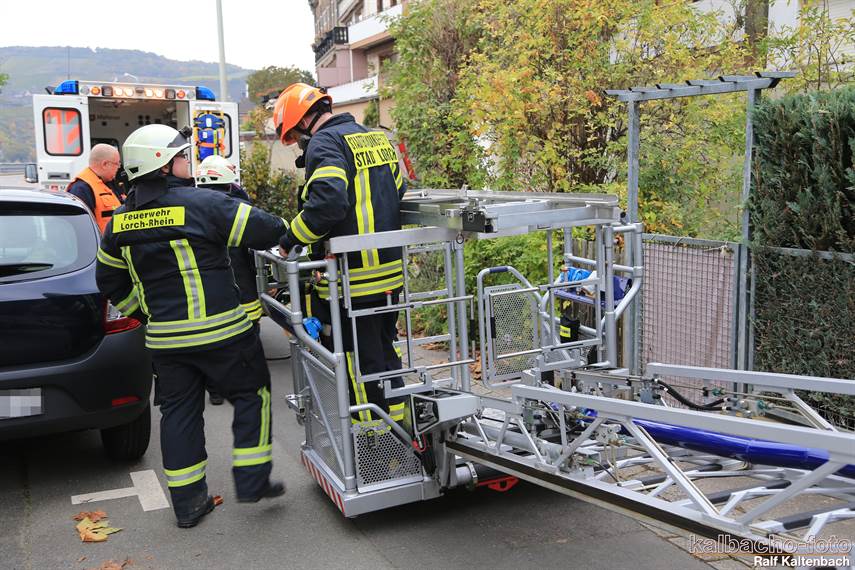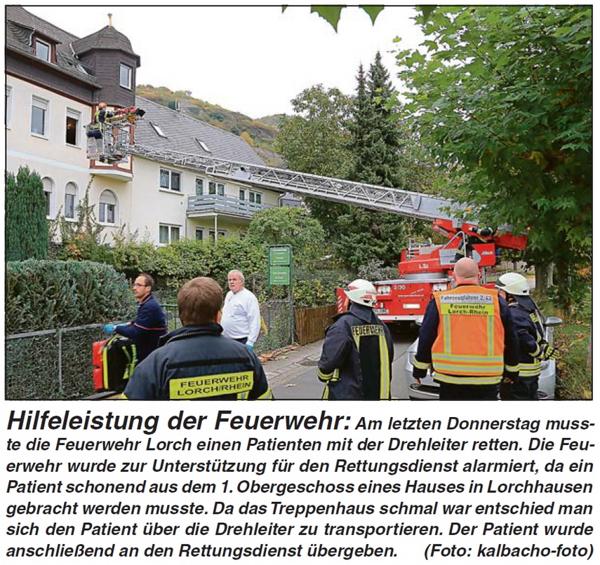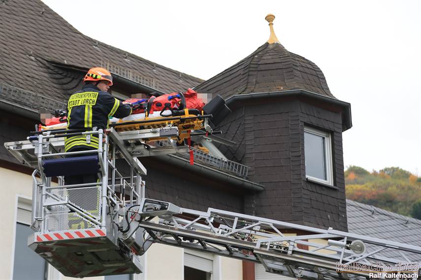 die Drehleiter zu retten. Der Patient wurde anschließend an den