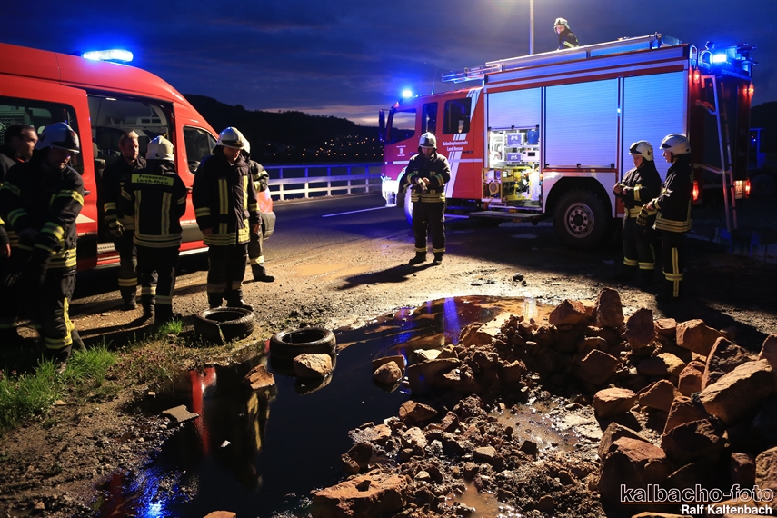 an der B42 alarmiert. Durch den Regen hatte sich eine große Pfütze